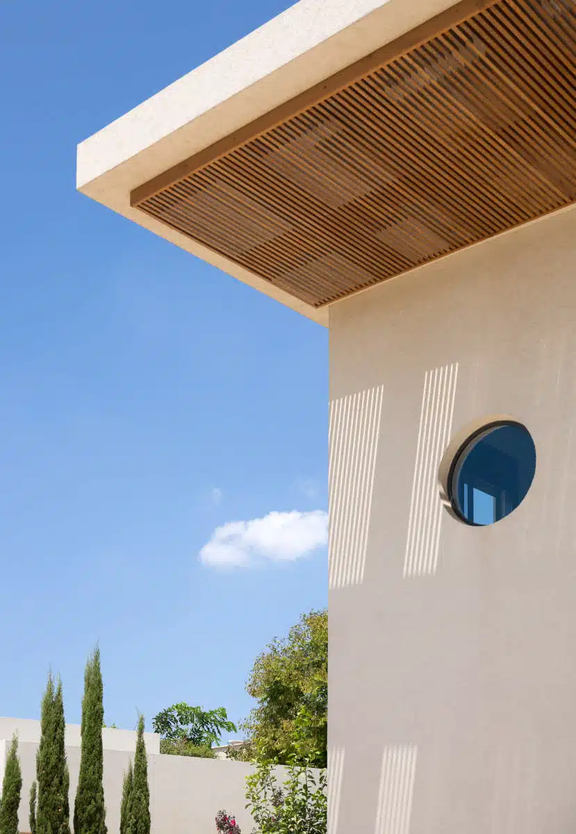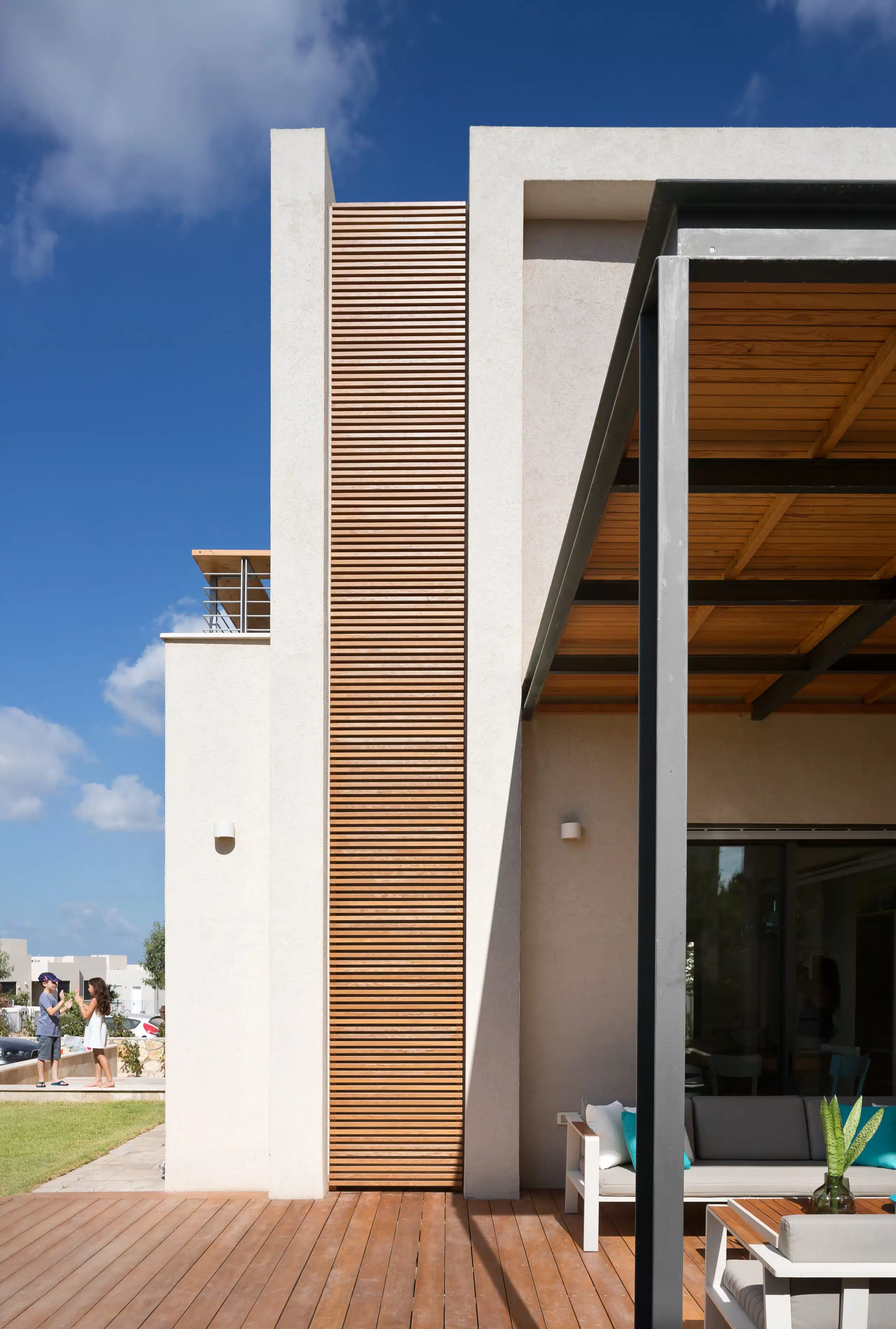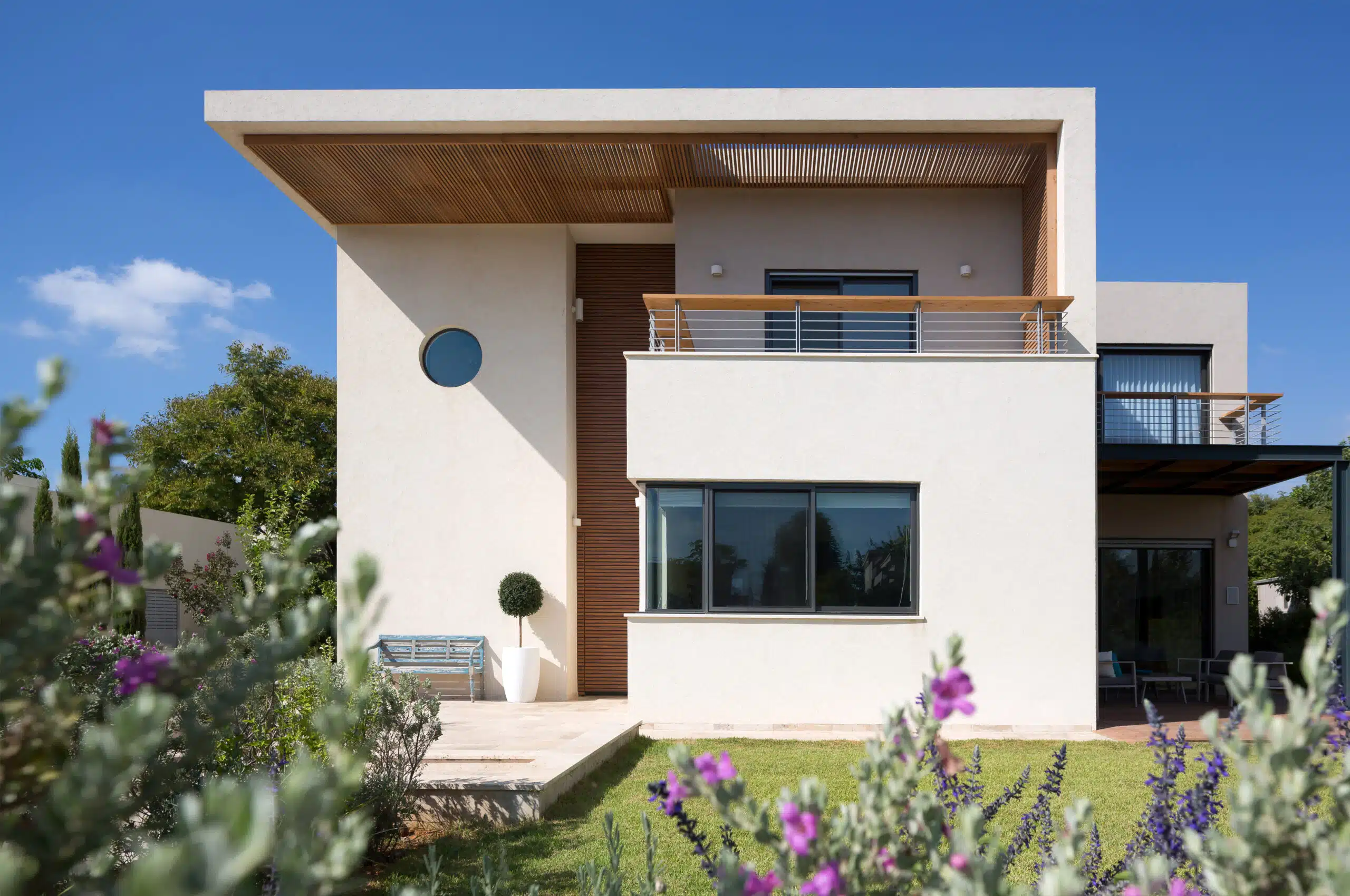 מילות השיר 'ימים לבנים' שכתבה לאה גולדברג בשנת 1932 היו ההשראה שלי כשתכננתי את הבית שלנו. החלטנו לעזוב את העיר הסואנת ומצאנו את עצמנו עם מגרש ריק בקיבוץ – שאמנם אינו עיר אך גם אינו כפר. הבית מגלם בתוכו מחד את תחושת 'שלוות הבדידות' של מי שעובר מן העיר אל הקיבוץ ומאידך את הרצון ב'חלונות פתוחים לרווחה…." – את הרצון להכניס את הטבע ואת חיי הקהילה אל תוך הבית שממוקם במגרש ללא גדרות וכחלק ממרקם ומהווי קיבוצי. האדריכלות של הבית מתרפקת על געגועים לעבר ומתכתבת עם מוטיבים ארכיטקטוניים של הדור הראשון של האדריכלים אשר תכננו בקיבוצים בארץ(ליאופולד קרקאוור-קיבוץ תל-יוסף 1930, אריה שרון-קיבוץ גבעת השלושה 1936, שמואל מסטצ'קין-קיבוץ מרחביה 1965ועוד).